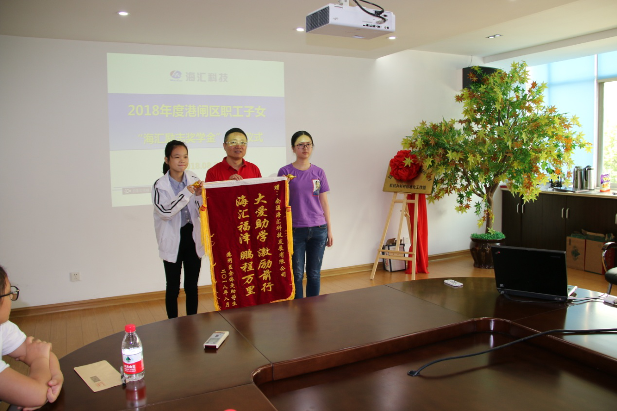 金秋時(shí)節(jié),開學(xué)在即,8月27日,2018年度港閘區(qū)職工子女“海匯勵(lì)志獎(jiǎng)學(xué)金”在海匯進(jìn)行發(fā)放。“海匯勵(lì)志獎(jiǎng)學(xué)金”創(chuàng)始人曹平董事長為學(xué)生們頒獎(jiǎng)并鼓勵(lì)大家要克服困難,努力學(xué)習(xí),將來為家庭分憂,為社會(huì)盡責(zé),傳承愛心。學(xué)生代表感謝海匯公司的愛心資助、并敬獻(xiàn)錦旗!