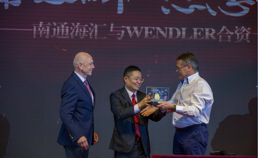 親愛的曹總,請接受這艘金燦燦的海匯之帆,祝海匯和wendler合資十周年快樂!